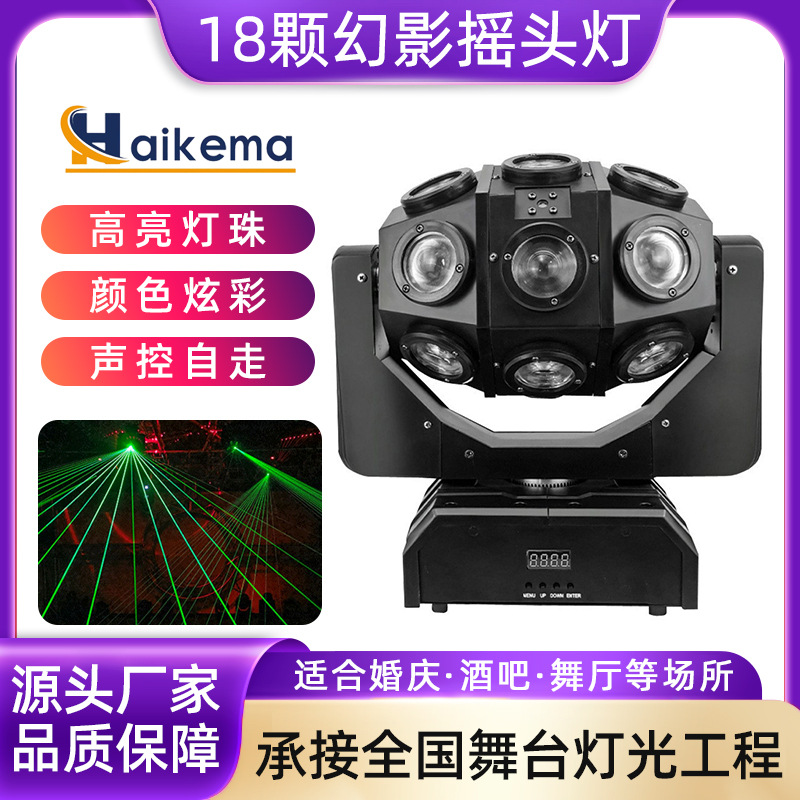 Lampu laser sorot berputar warna-warni, lampu laser cahaya kepala bergerak 18 Phantom