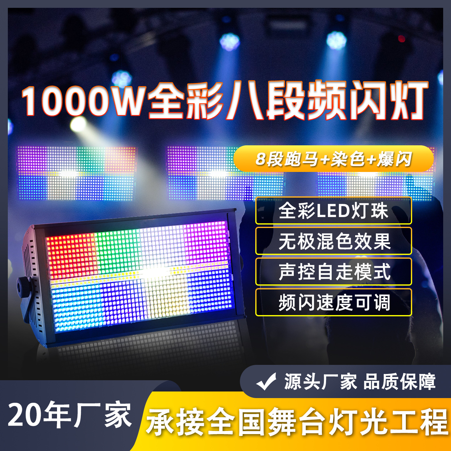 Lampu Strobo Delapan Bagian 1000W Penuh Warna 3 Dalam 8 Bagian Lampu Strobo Lampu Panggung Lampu Suasana Ruang Siaran Langsung Bar Lampu Panggung