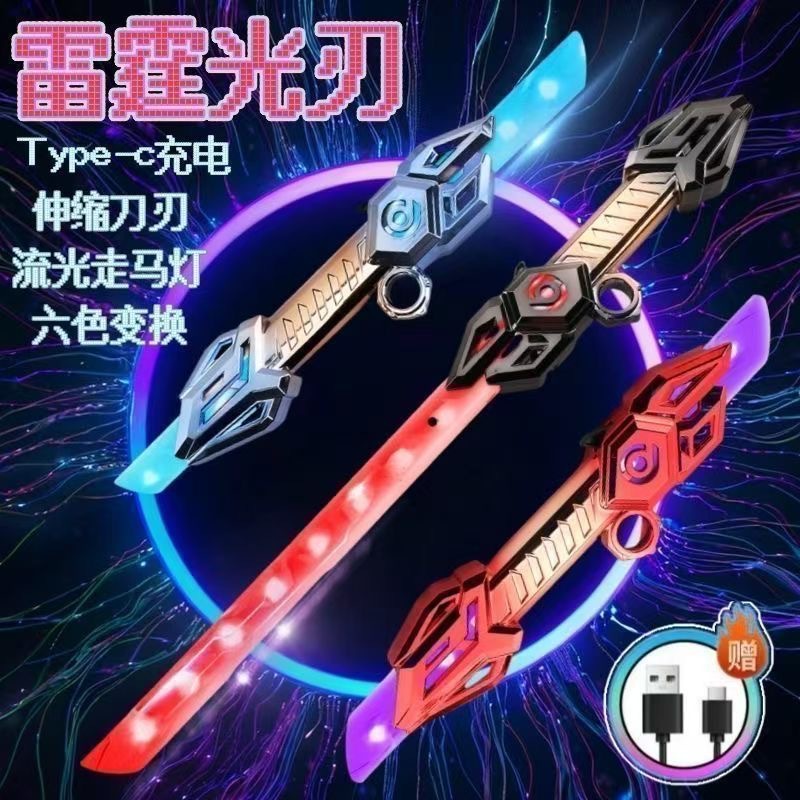 Tiktok Pedang Cahaya panas Star Wars pedang laser teleskopik dua dalam satu jaring merah anak-anak mainan bercahaya kios grosir
