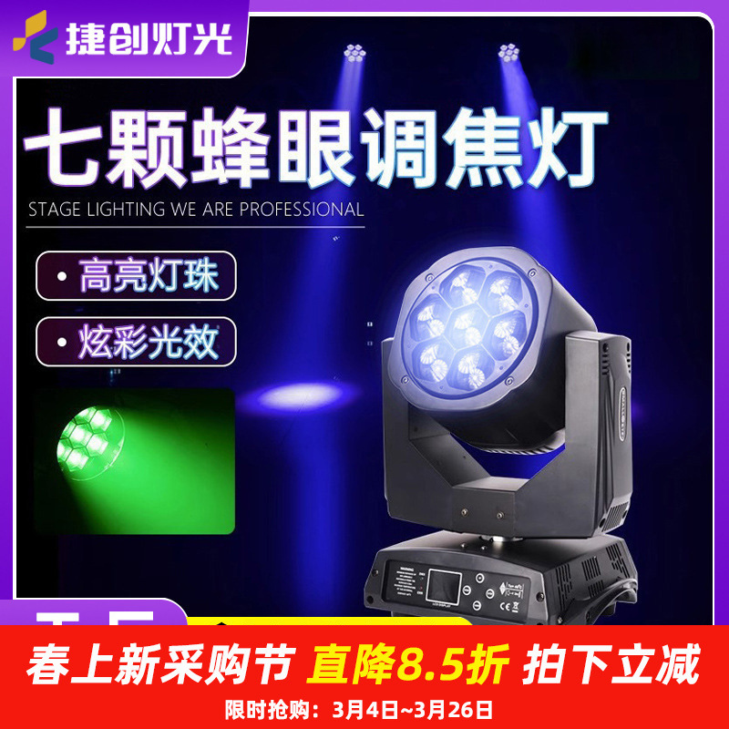 Tujuh bee eye Focus lampu utama bergerak 10W/40W, lampu LED atmosfer bar dicelup warna-warni lampu panggung