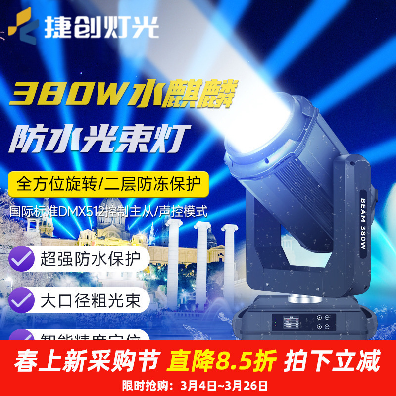 Lampu sorot beam tahan air lintas batas 380w untuk pertunjukan panggung luar ruangan, tempat wisata, lampu sorot 480W moving head dengan pola cahaya panggung, grosir
