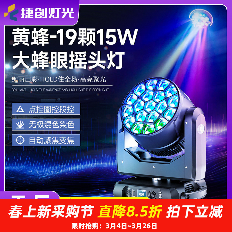 Lampu sorot led, 19 mata lebah besar dengan celup kepala yang berputar untuk lampu sorot bar panggung