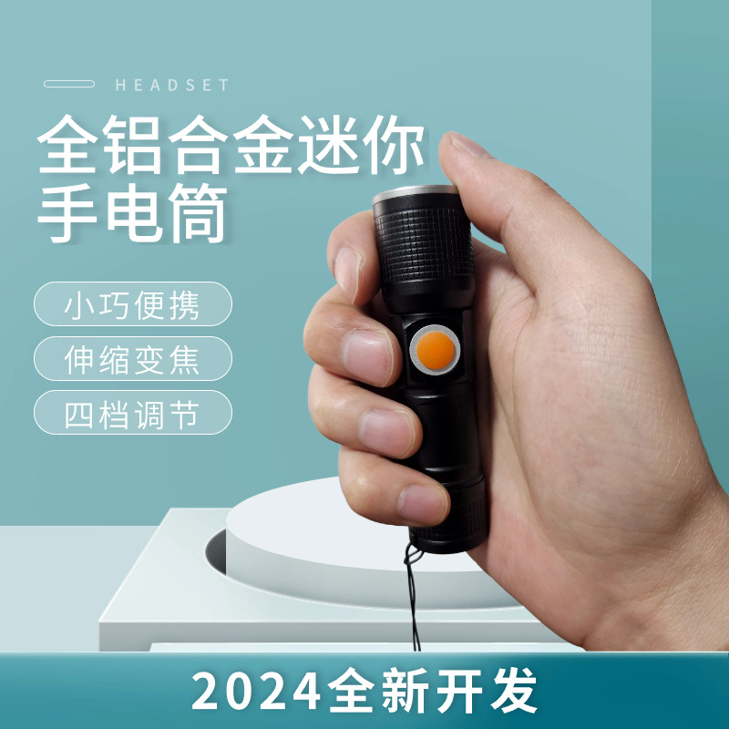 Senter lampu darurat led multifungsi, senter isi ulang USB fokus dapat ditarik super terang jarak jauh paduan aluminium