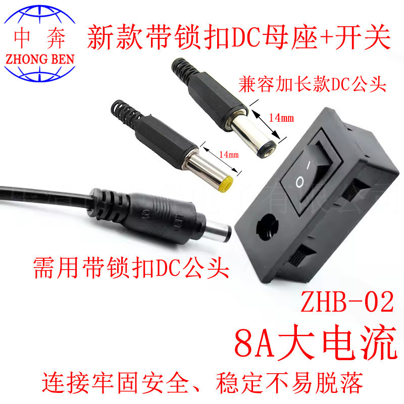 Soket Daya DC 12-24v dengan kunci + saklar ZHB-02 soket DC dua dalam satu kartu dengan sakelar