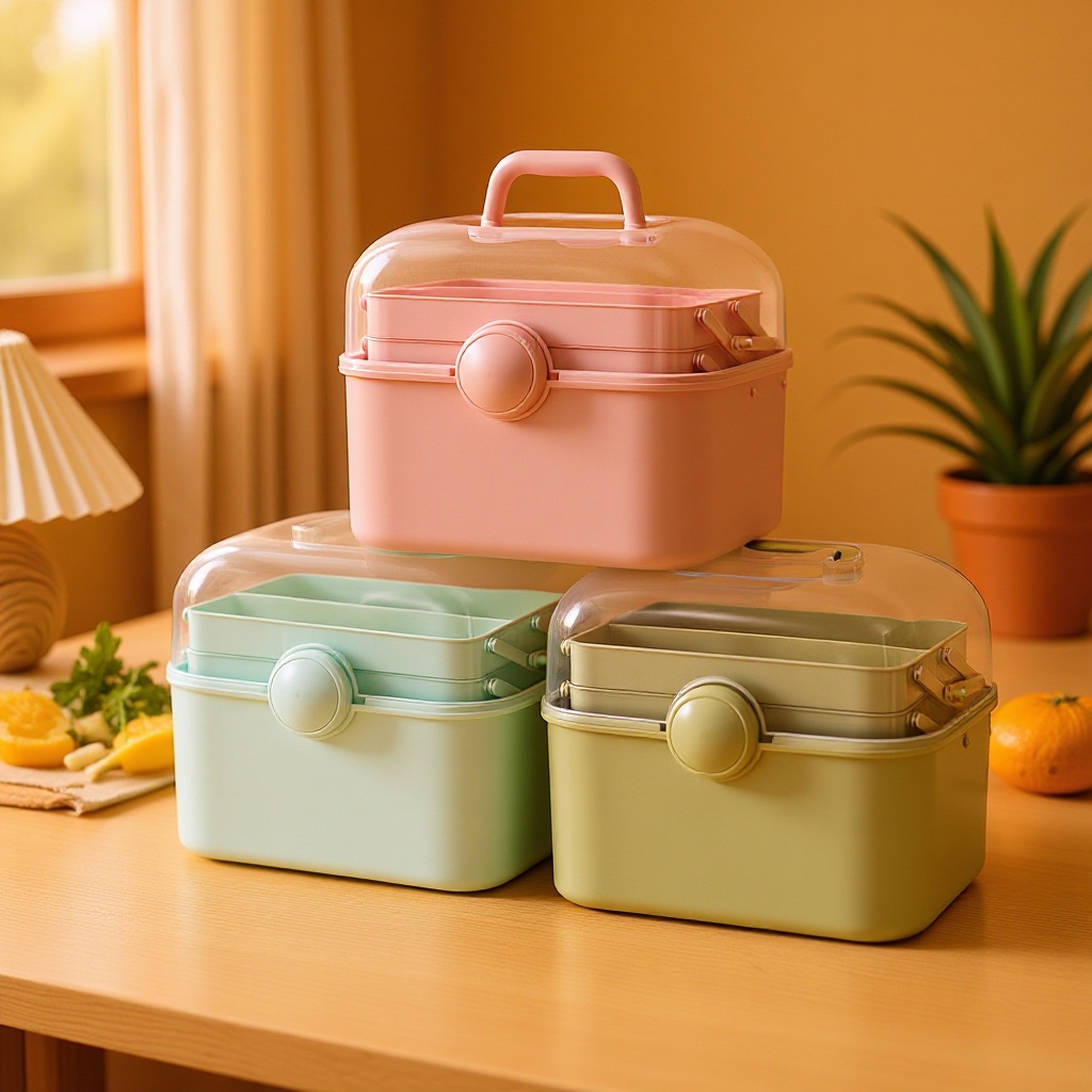 Kotak peralatan manikur lampu kuku Pemoles kuku, kotak penyimpanan mainan plastik portabel lipat tiga lapis gesper berputar kotak obat rumah tangga