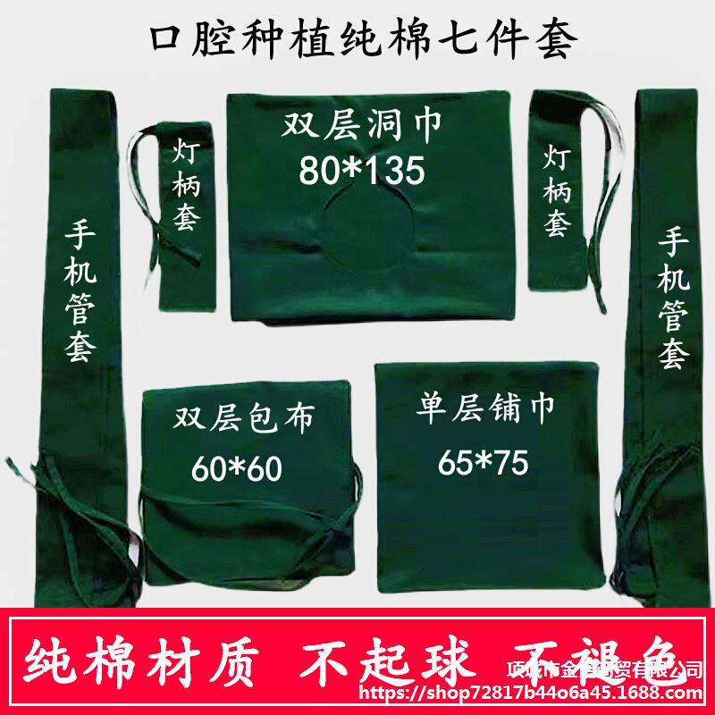 Penanaman mulut gigi kapas murni tujuh potong set lubang handuk pakaian bedah kain penutup pelindung kain kain kain kapas disinfeksi tebal