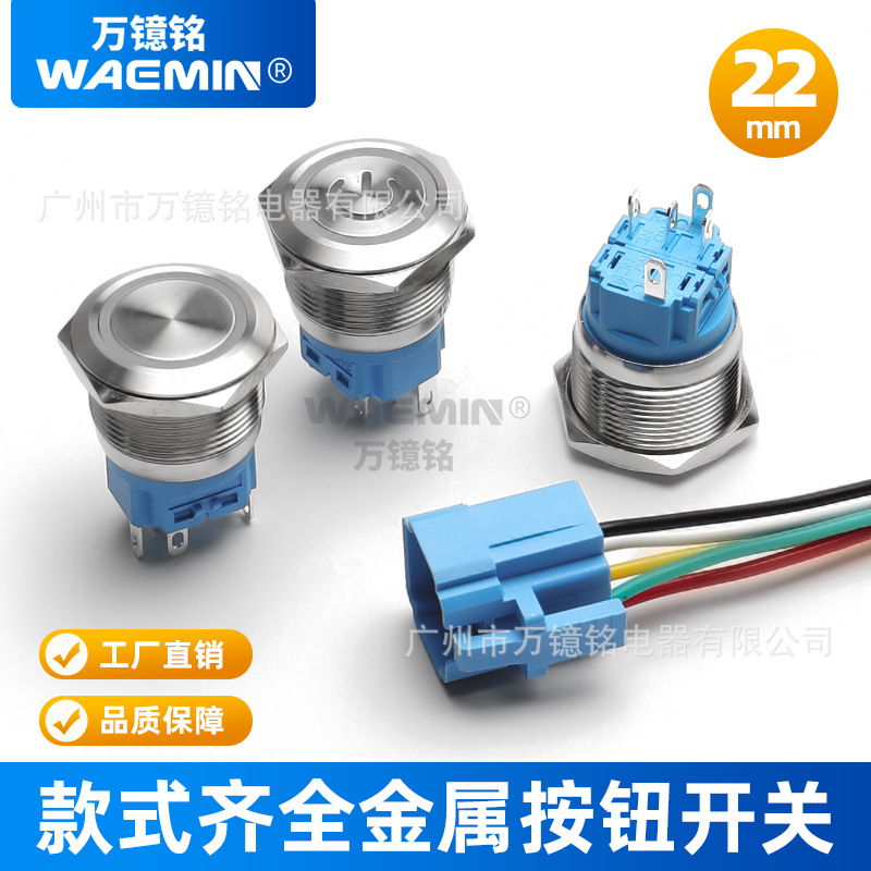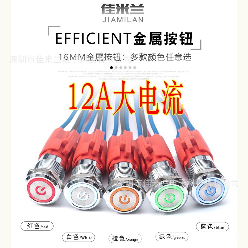 Sakelar tombol antiair logam 16mm dengan sakelar Starter lampu, sakelar penguncian otomatis arus tinggi 12A