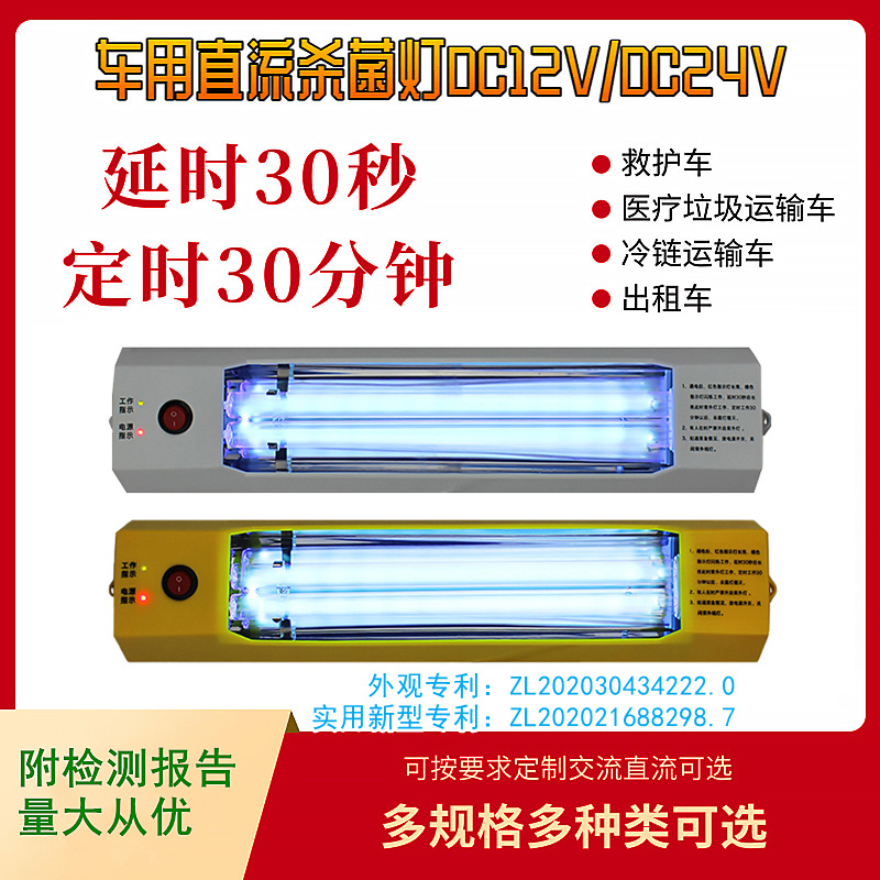 Lampu disinfeksi UV kendaraan DC 12V 24V, lampu disinfeksi transportasi makanan segar truk sampah medis ambulans tegangan rendah