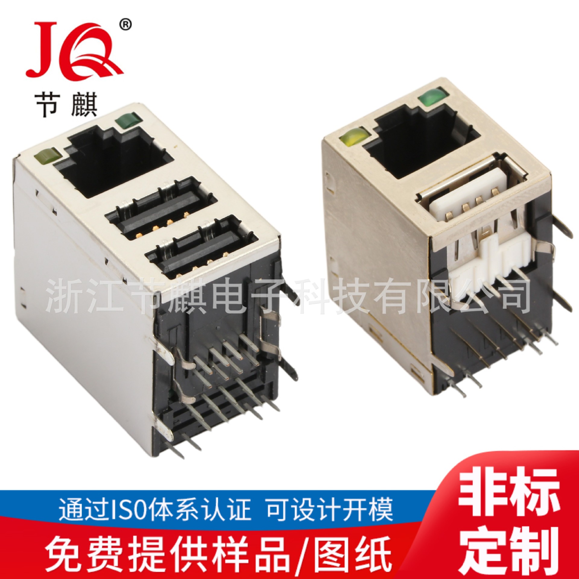 RJ45 + antarmuka jaringan lapisan ganda USB3.0 Gigabit bebas peluru koneksi kristal periferal sinyal antarmuka plug dengan cahaya