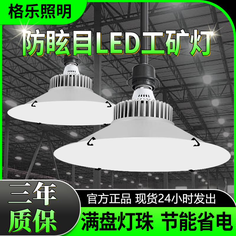 Lampu industri dan tambang LED, lampu pabrik, pencahayaan bengkel dan gudang, lampu gantung dasar sekrup E27 untuk langit-langit, kap lampu cahaya lembut.