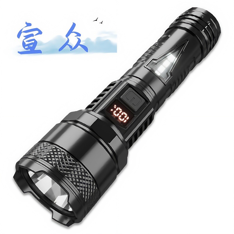 Senter lampu samping LED ringan USB yang kuat, lampu sorot jarak jauh luar ruangan, tampilan digital, zoom optik isi ulang rumah tangga