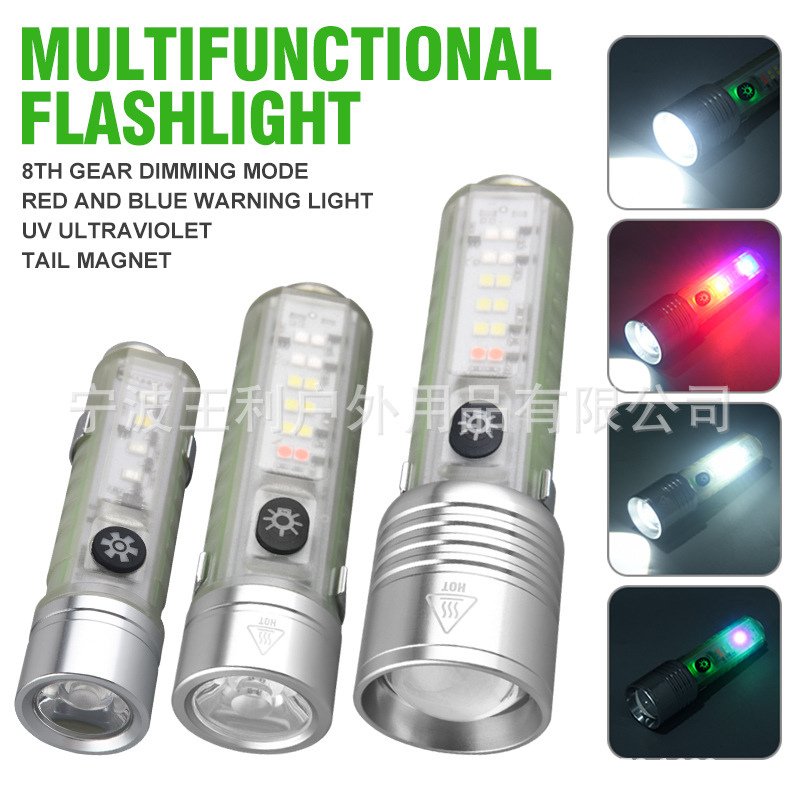 Lintas Batas Produk Baru Laser Putih LED Senter Multifungsi Tiga Warna Zoom Sisi Lampu Sinyal Pengisian Tipe-C
