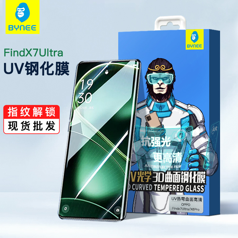 UV Tempered Tempered FindX7Ultra Blue Gorilla Tempered FindN2 Curved Reno12 Film Ponsel untuk OPPO
