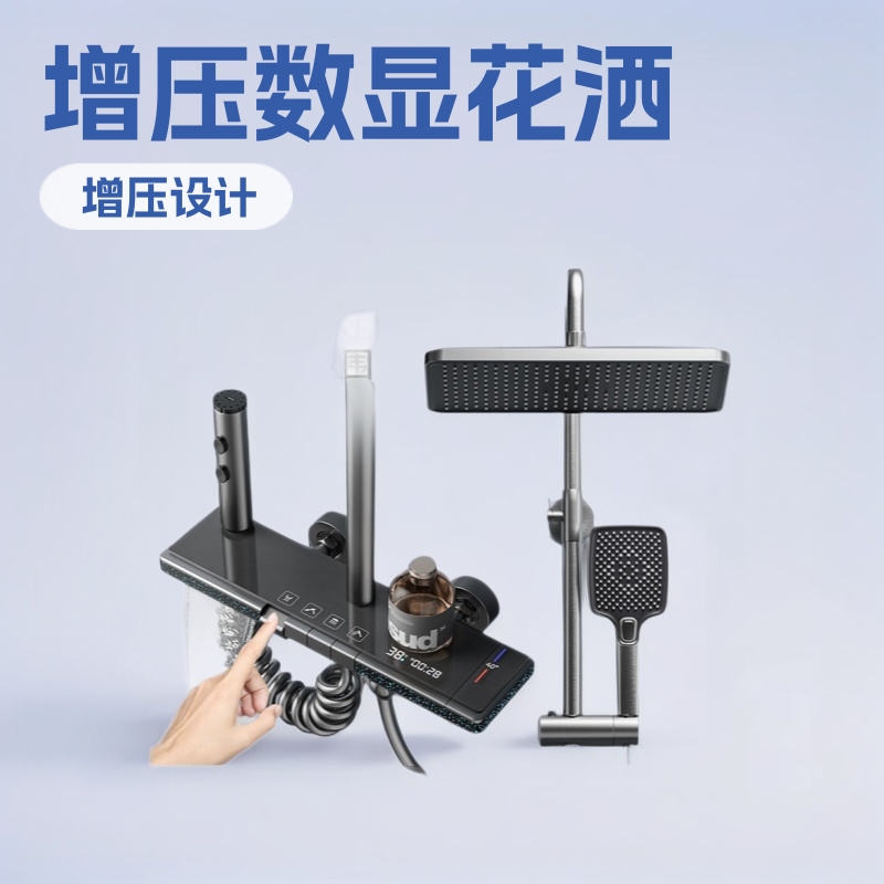 Set Mandi Mandi Tembaga Penuh Pabrik Grosir Suhu Konstan Rumah Tangga Pistol Abu-abu Tombol Tampilan Digital Lampu Suasana Supercharged Bunga Anggur