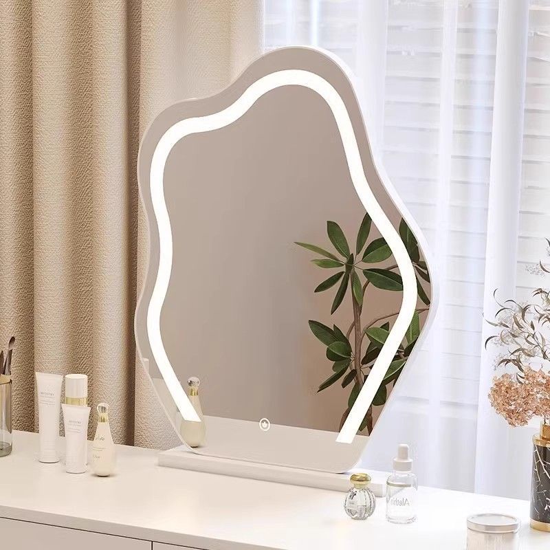 Cermin Rias Cermin Rias Kamar Tidur Utama Cermin Rias Meja Desktop dengan Lampu LED Mewah Ringan