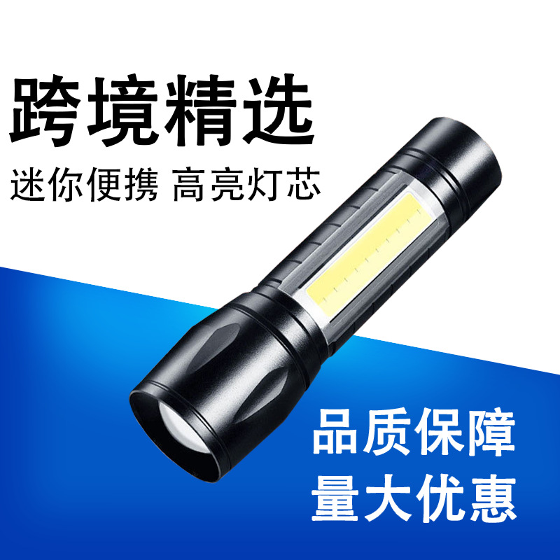 Lampu Senter Cahaya Kuat Mini Lintas Batas Kecil Lampu Samping Portabel Pengisian Daya Luar Ruangan LED Zoom Kerja Jarak Jauh