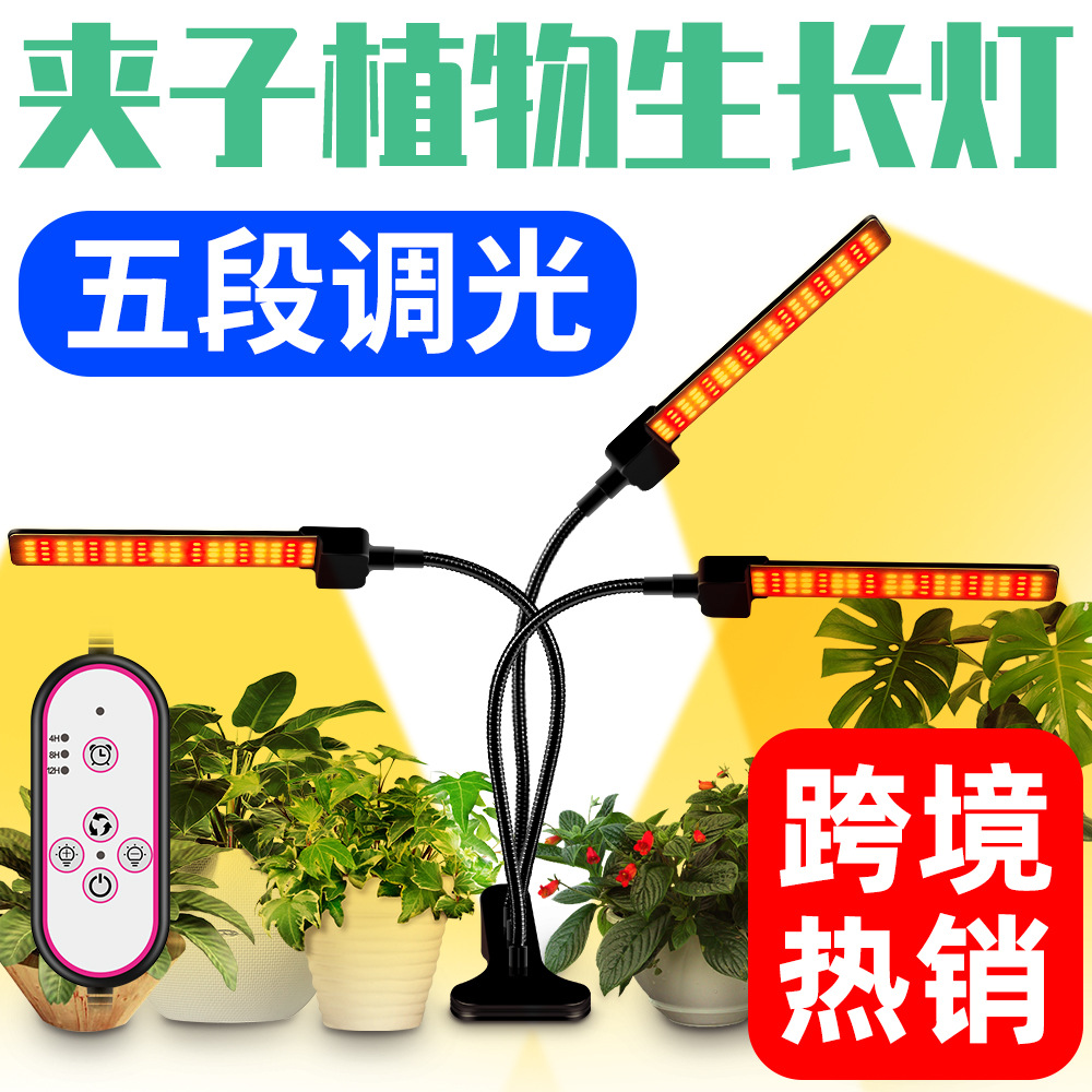 Klip LED lampu pertumbuhan tanaman lampu tiga kepala lima segmen waktu peredupan lampu tanaman spektrum penuh bunga sayuran cahaya penuh