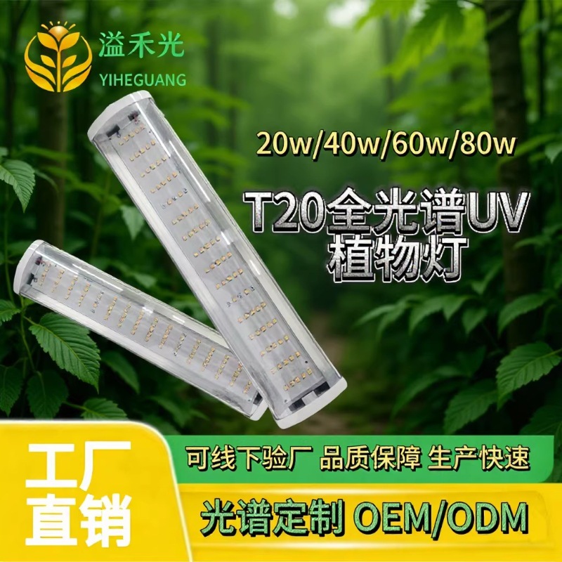 Lampu pertumbuhan tanaman LED Yiheguang T20 spektrum penuh + UV anti-stunting penambah warna daya penuh dengan 5 baris