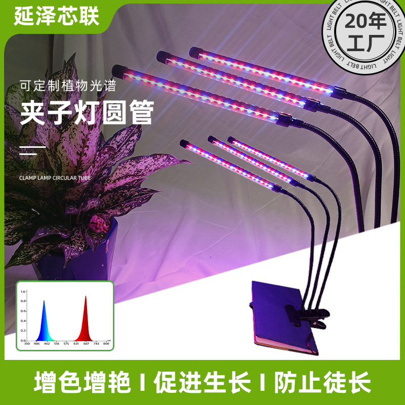 Lampu tanaman led langsung pabrik klip USB lampu tanaman cakram empat kepala 5 kecepatan waktu peredupan lampu tanaman tahan air