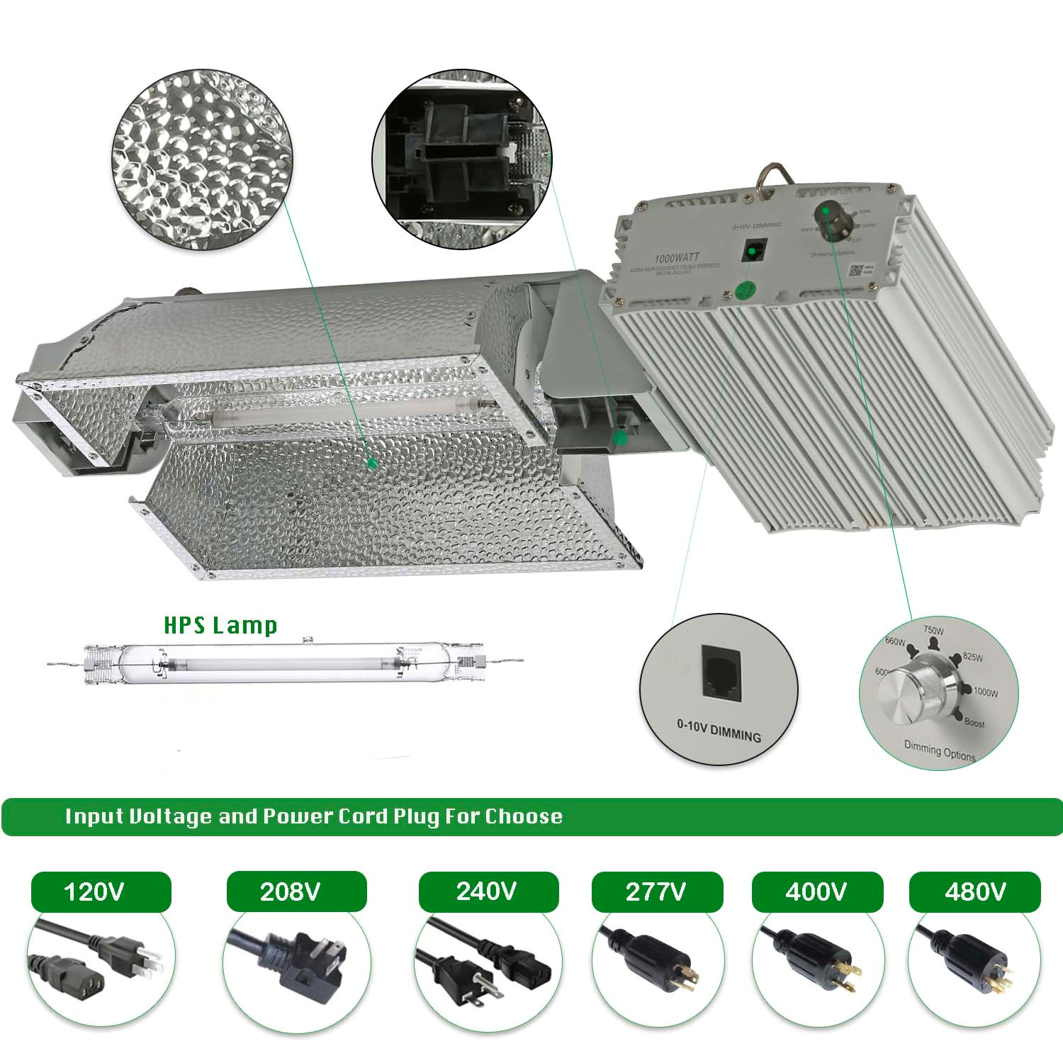 Lampu pertumbuhan tanaman spektrum penuh, lampu pencahayaan pencahayaan sodium ujung ganda 1000W HID