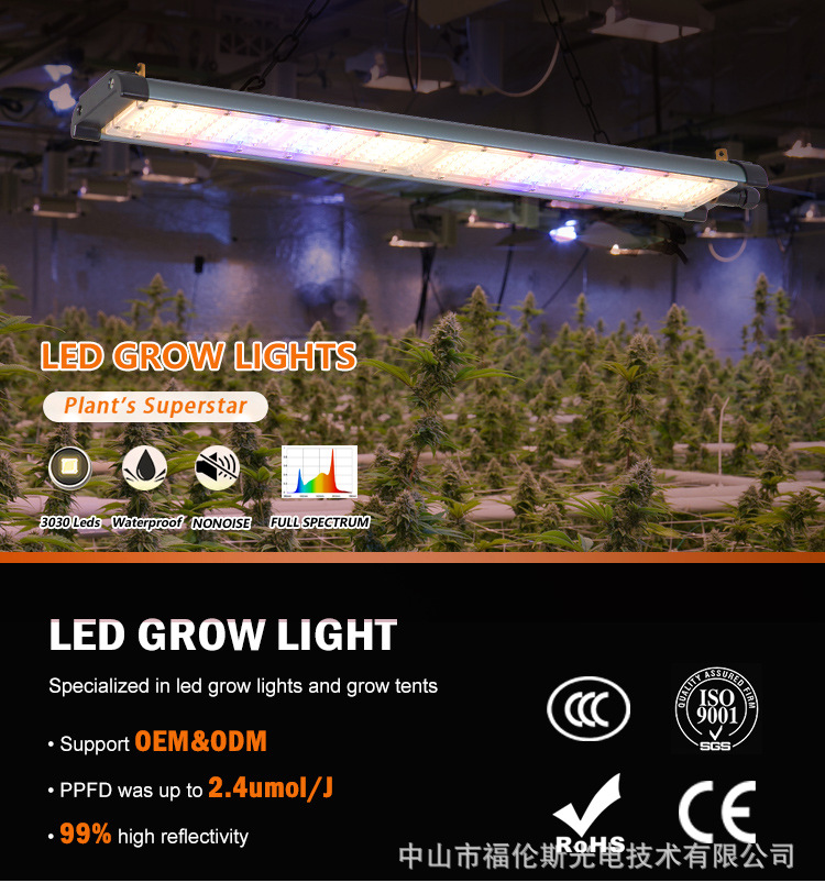 Lampu penerangan tambahan 120W untuk antar baris tanaman di rumah kaca dan penanaman LED dalam ruangan, IP65 spektrum penuh.