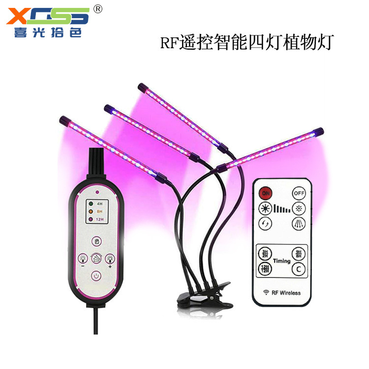 Lampu pertumbuhan tanaman remote control RF nirkabel, lampu jepit 4 kepala 40W spektrum penuh USB lampu sukulen anti-terlalu panjang