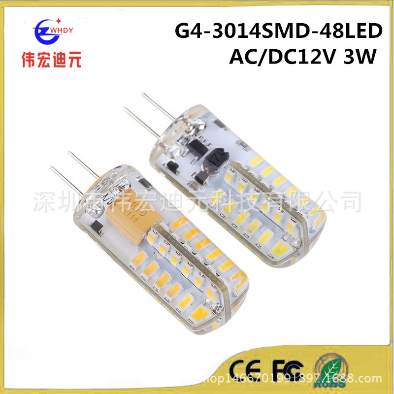Lampu silikon led g4 pabrik ACDC 48 beads 3014SMD 3W 12V pin tegangan rendah bohlam jagung kecil