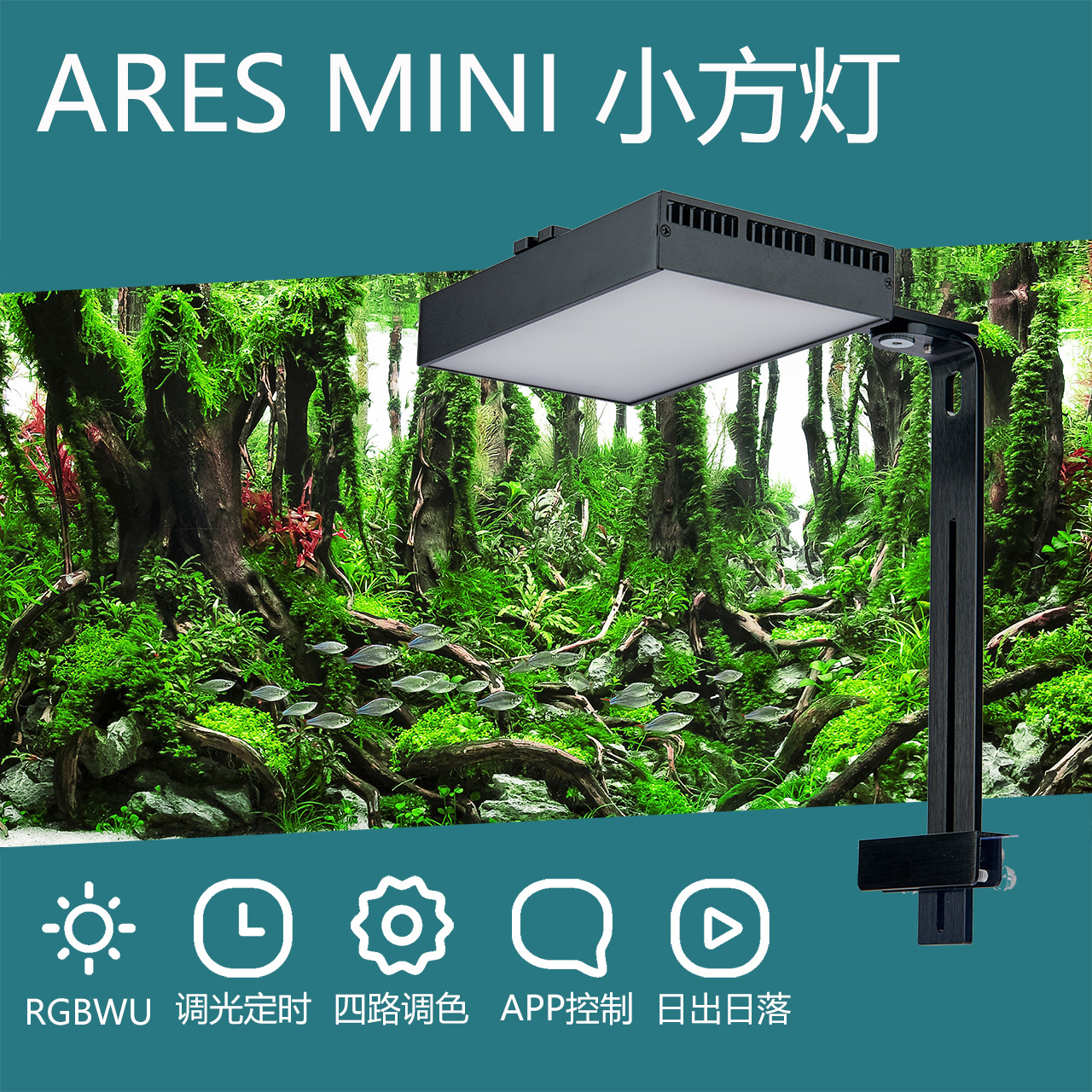 Lampu persegi kecil Aresmini lampu tanaman air RGBWU lampu tangki ikan matahari terbenam spektrum penuh 72W LED lampu tangki ikan