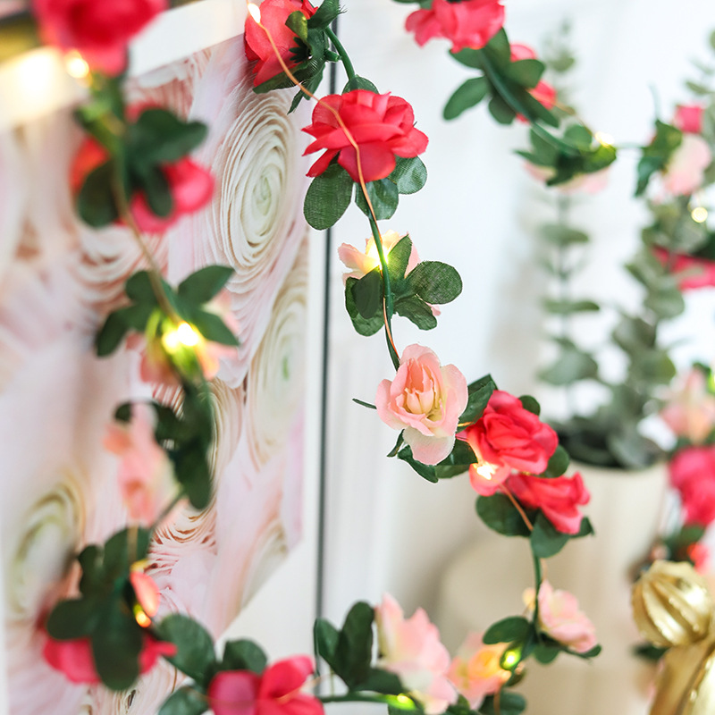 Lampu kawat tembaga led rotan mawar, lampu dekorasi daun hijau Rumah Nordik, lampu tali cahaya berwarna, lampu saluran foto