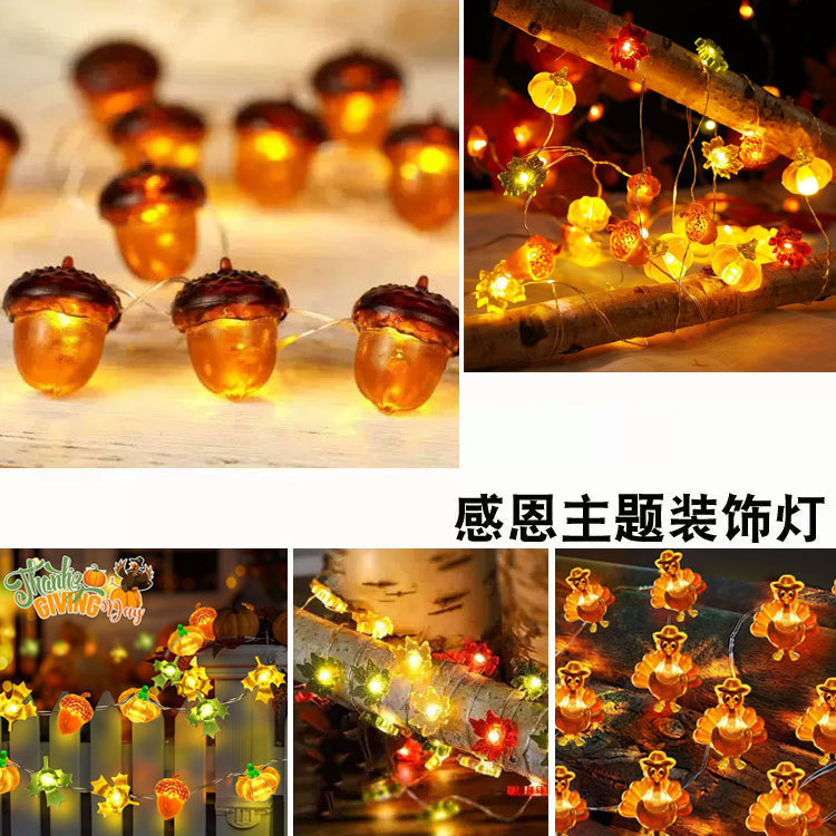 Lampu dekorasi Thanksgiving lampu tali daun maple labu 3D ACORN lampu festival panen karangan bunga Natal musim gugur lampu kawat tembaga led