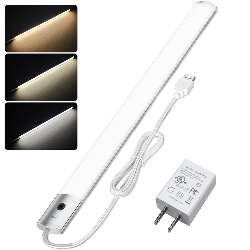 Lampu sensor pemindai tangan plug-in USB panas lintas batas 5V lampu ultratipis 8mm tanpa kabel peredupan tiga warna suhu led dapur dan kamar mandi bilah lampu