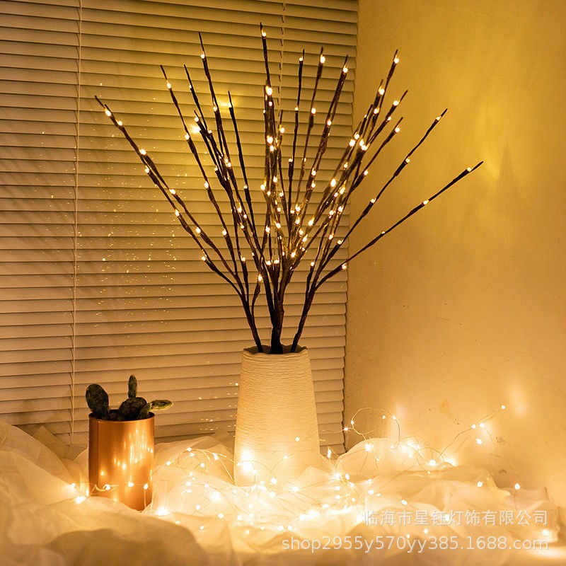 Lampu hias cabang Nordic LED, lampu pohon dekorasi ruang Nordic lampu malam bintang lampu merah jaring kreatif