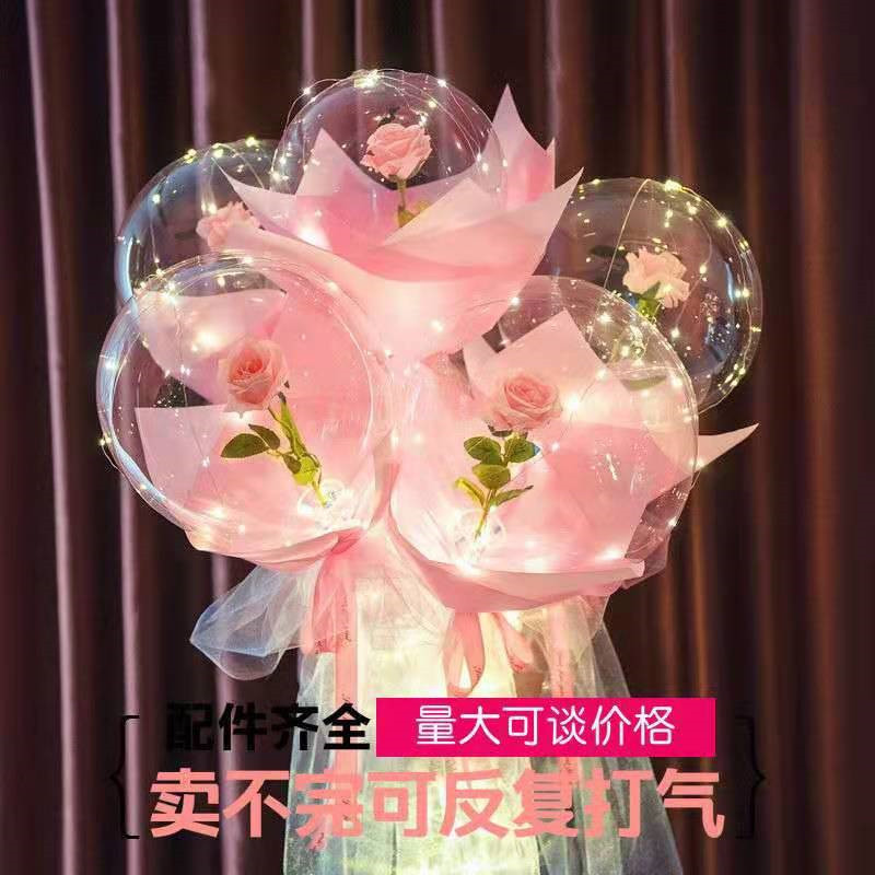 Qixi bola ombak mawar Hari Valentine buket bola ombak mawar merah jaring bercahaya led balon penahan bunga