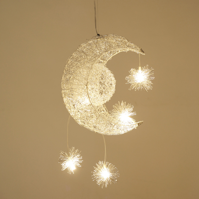 Lampu gantung kamar anak-anak lampu gantung bulan kawat aluminium minimalis modern lampu gantung bintang balkon restoran grosir