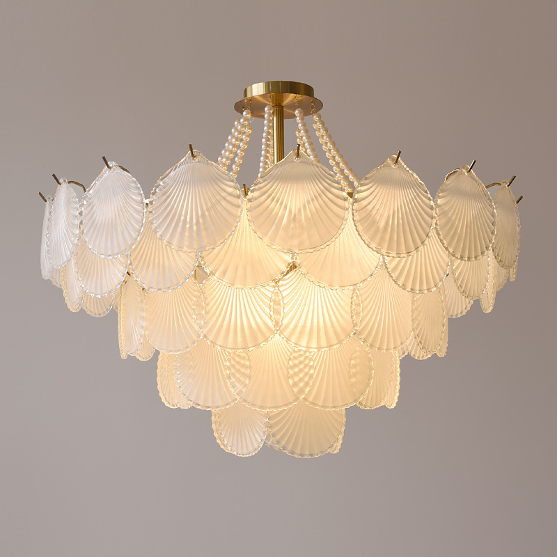 Lampu cangkang kaca retro Perancis, lampu ruang tamu lampu utama Italia sederhana post-modern kamar tidur lampu ruang makan