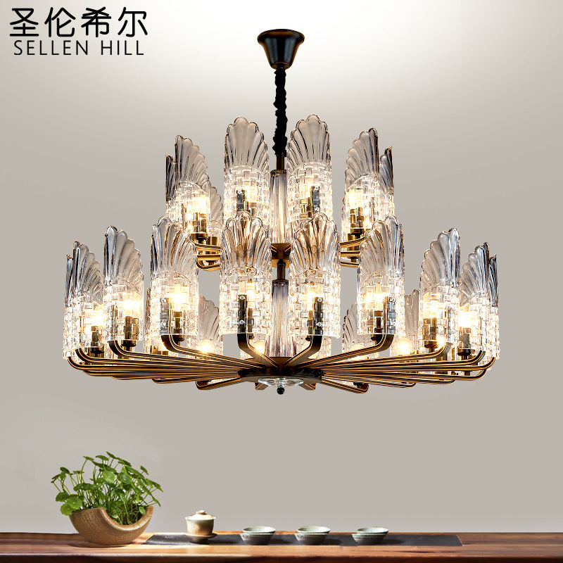 Lampu gantung gaya Cina, lampu kristal minimalis modern ruang tamu atmosfer, lampu rumah dupleks untuk restoran Hotel Villa