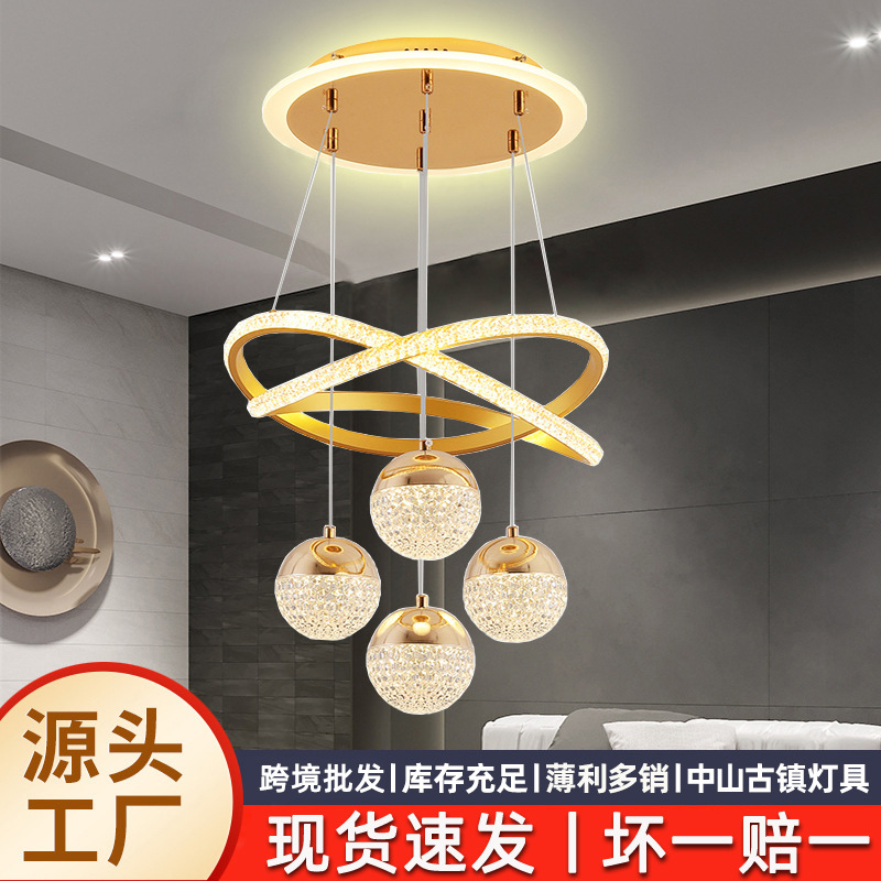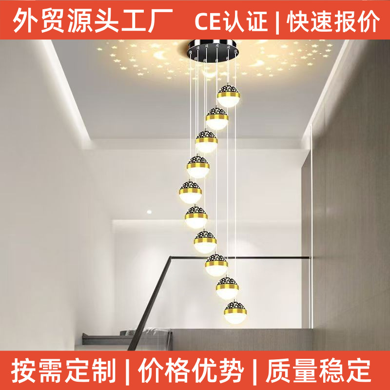 Lampu gantung led, lampu gantung tangga berputar modern minimalis restoran ruang tamu Nordik bulat dupleks untuk villa Volkswagen