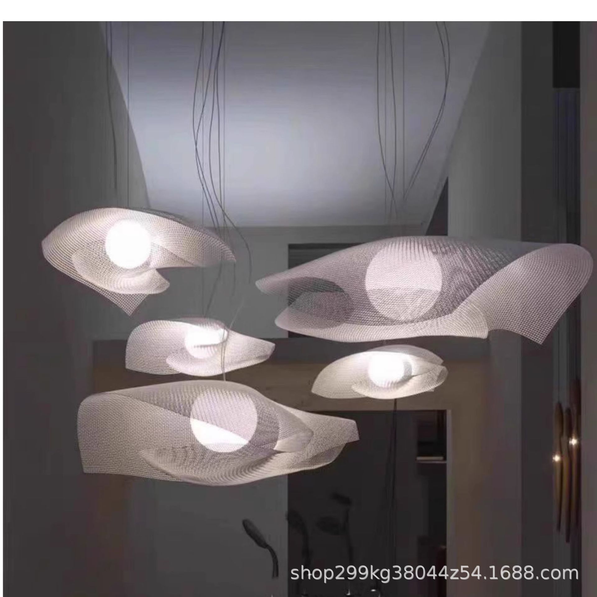 Lampu gantung awan kreatif kamar tidur anak-anak pakaian toko pakaian lampu awan warna jaring taman kanak-kanak hotel lampu awan putih katun merah
