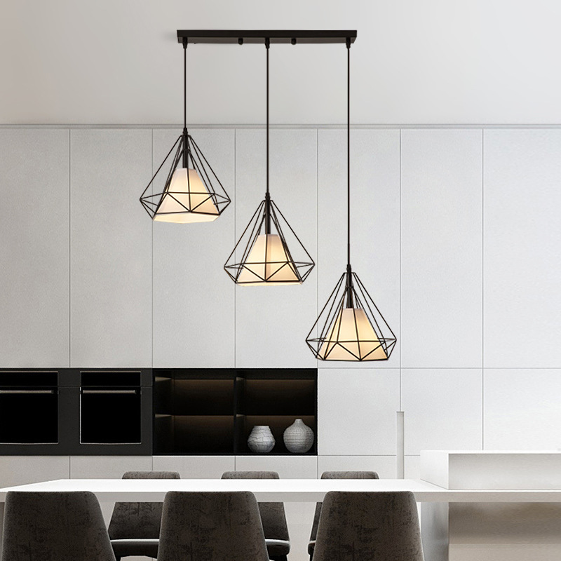 Lampu gantung restoran minimalis Modern, lampu tiga-kepala kreatif toko komersial lampu bar besi berlian seni Nordik