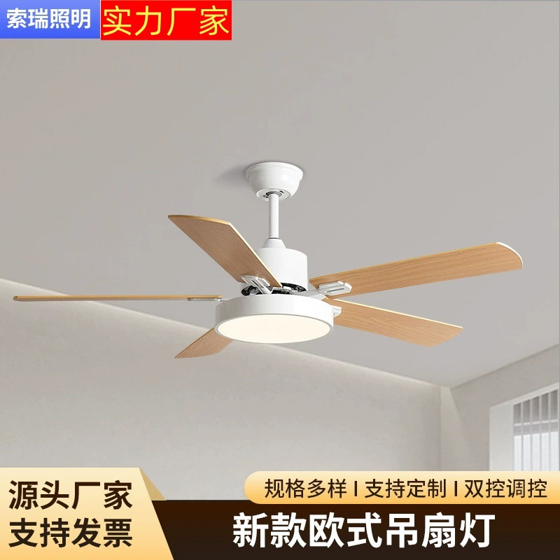 Lampu Kipas bergaya Eropa, lampu kipas langit-langit terintegrasi ruang tamu ruang makan kamar tidur senyap, lampu gantung kipas lima daun rumah tangga