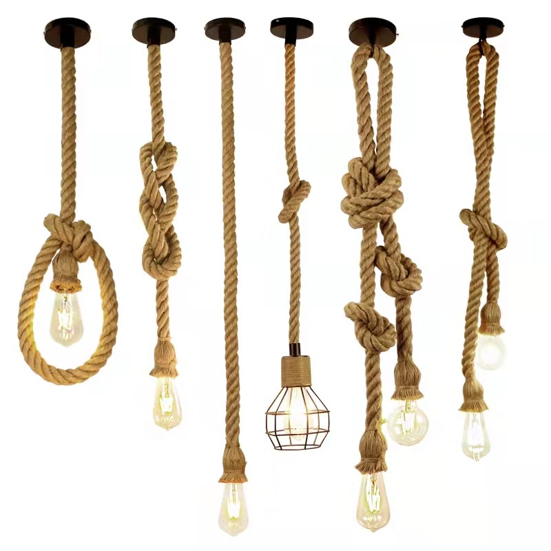 Lampu gantung industri tali rami Retro lampu seni restoran bar kafe buatan tangan lampu gantung Tunggal