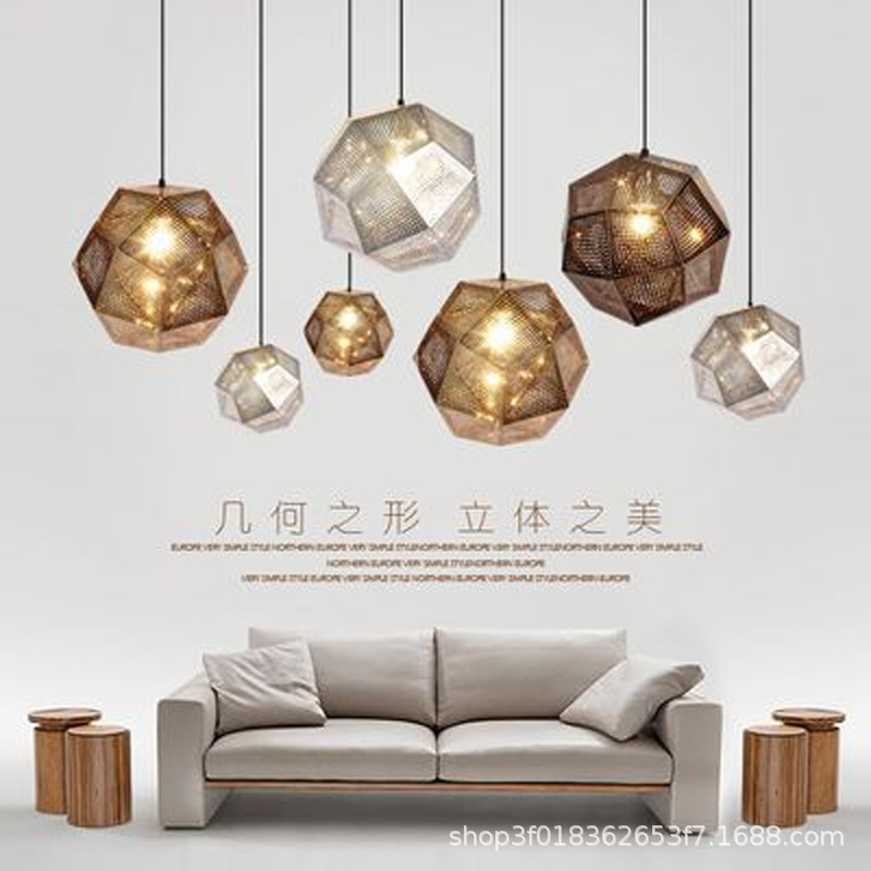 Lampu gantung multi-sisi baja tahan karat Post-modern lampu pameran bar kedai kopi restoran kreatif lampu logam geometris modis