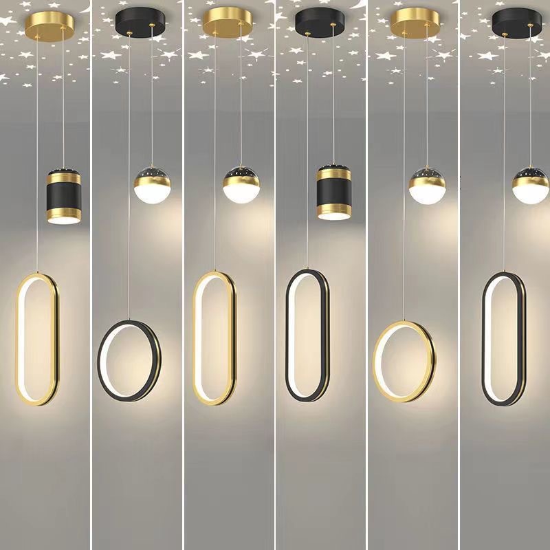 Lampu gantung samping tempat tidur Master, cahaya modern sederhana mewah berbintang proyeksi Internet baru selebriti garis panjang lampu gantung kecil