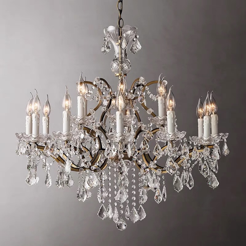 Lampu kristal ruang keluarga, cahaya lilin mewah retro besi Nordik Restoran Vila kamar tidur kepribadian kreatif