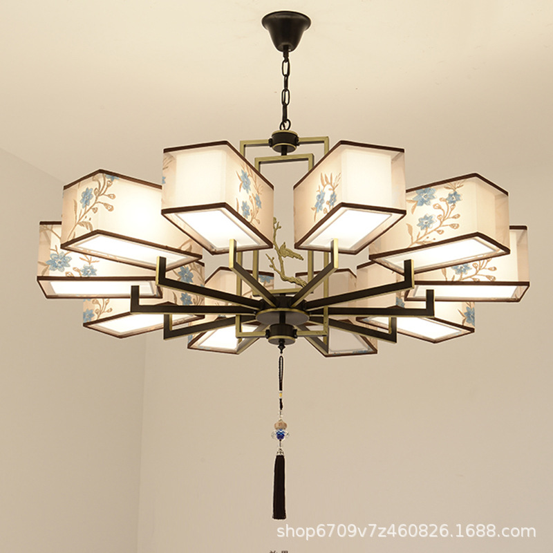 Lampu gantung gaya China, lampu bordir rumah teh gaya China suasana sederhana untuk kamar tidur ruang makan