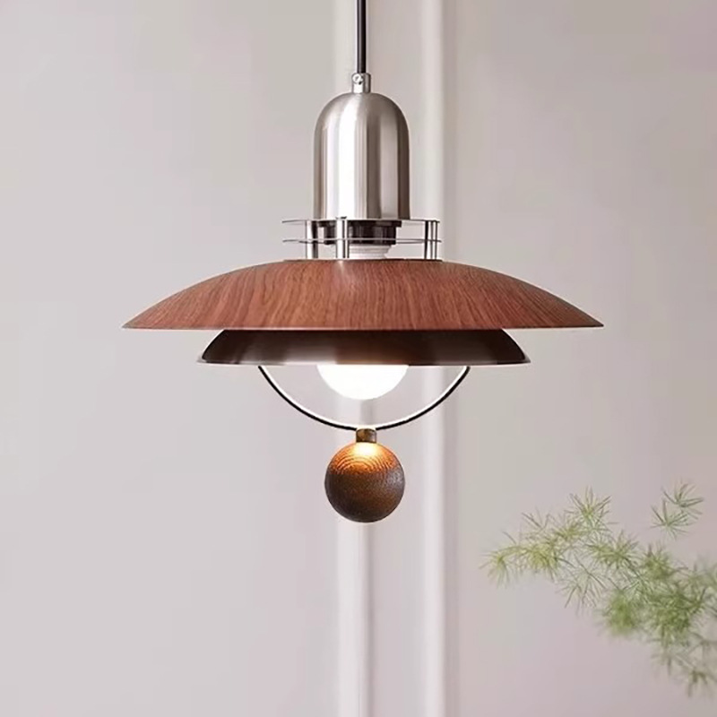 Pabrik Pencahayaan Beichang Lampu Gantung Piring Terbang Restoran Gaya Pertengahan Lampu Gantung Bar Pelindung Mata Spektral Penuh Kayu Walnut Sederhana Modern