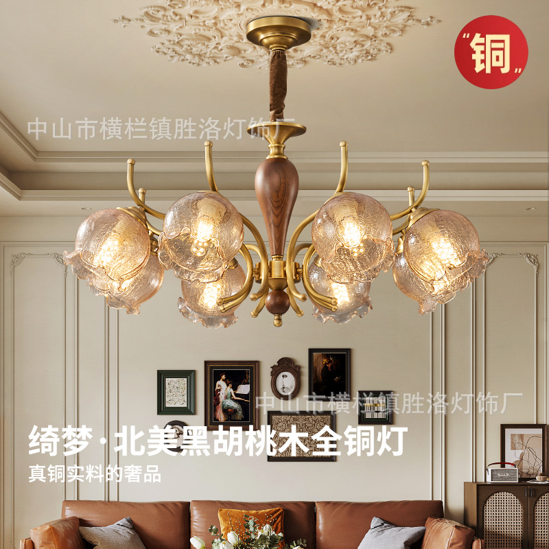 Kamar Tidur Utama Hangat Vintage Kayu Kenari Hitam Amerika Utara Lampu Gantung Ruang Tamu Retro Gaya Amerika Gaya Perancis