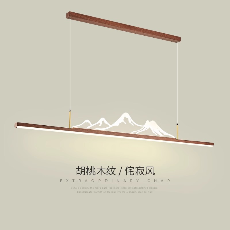 Lampu Gantung Restoran Gaya Tiongkok Baru Satu Garis Panjang Pola Kayu Walnut Lampu Ruang Belajar Bar Gaya Cina Zen Lampu Meja Teh Kamar Teh