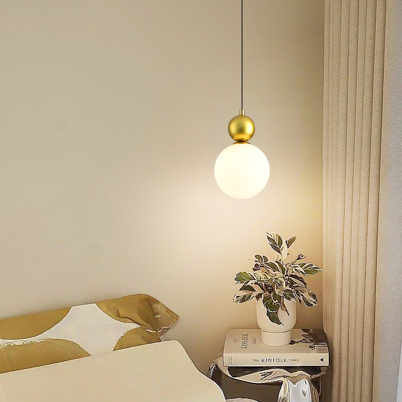 Lampu Gantung Kecil di Tempat Tidur Kamar Tidur Restoran Gaya Pertengahan Garis Gantung Panjang Kepala Tunggal Meja Restoran Kaca Retro Prancis Berkelas Tinggi