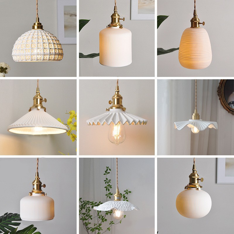 Lampu Gantung Mewah Ringan Gaya Jepang INS Lampu Gantung Keramik Lipit Kuningan Samping Meja Makan Kamar Tidur Restoran Sederhana Nordic